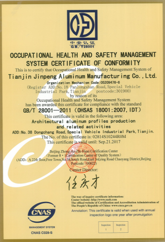Cùng với sự tăng lên, Hồ sơ Jinpeng đạt được chứng nhận như ISO9001, ISO14001, GB / T28001-2001, và AMAA từ Mỹ.